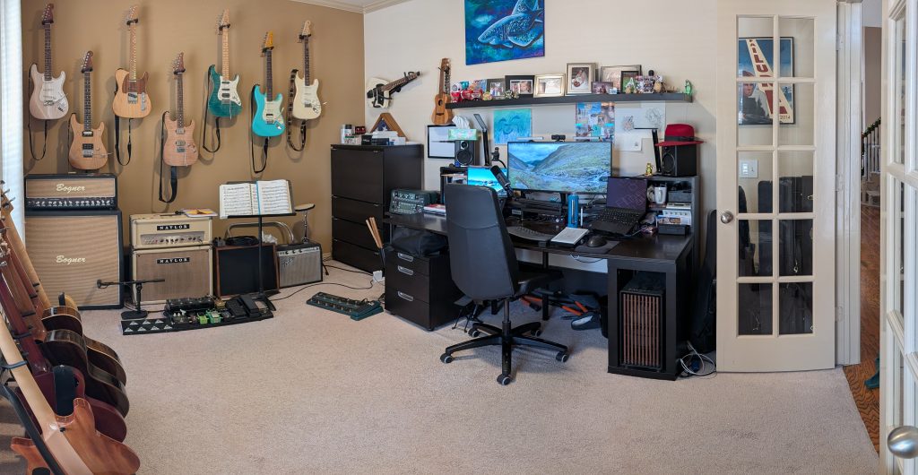 The Kemper is a truly amazing piece of gear. I use it almost exclusively for recording and most of my gigs. While the unit is best known for it’s amazing amps tones, the effects are really good too. I used to run my pedal board in front of it, but now that I have the foot controller (aka the Remote), the Kemper is pretty much all I use as it does everything well. More recently I’ve added a small 1×12 cab with the Kemper Kone to capture “in the room” sounds. I love using this setup.
